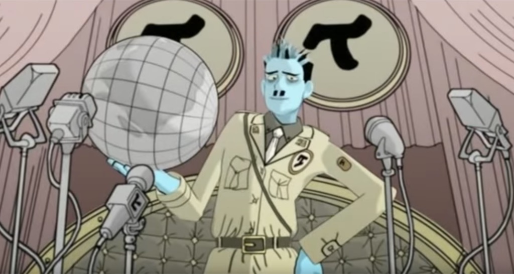 ho visto solo la fine.. il pezzo si chiama “il grande dittatore” si rifà un po’ al film di Chaplin, riprendendone l’indole di grande umanista.